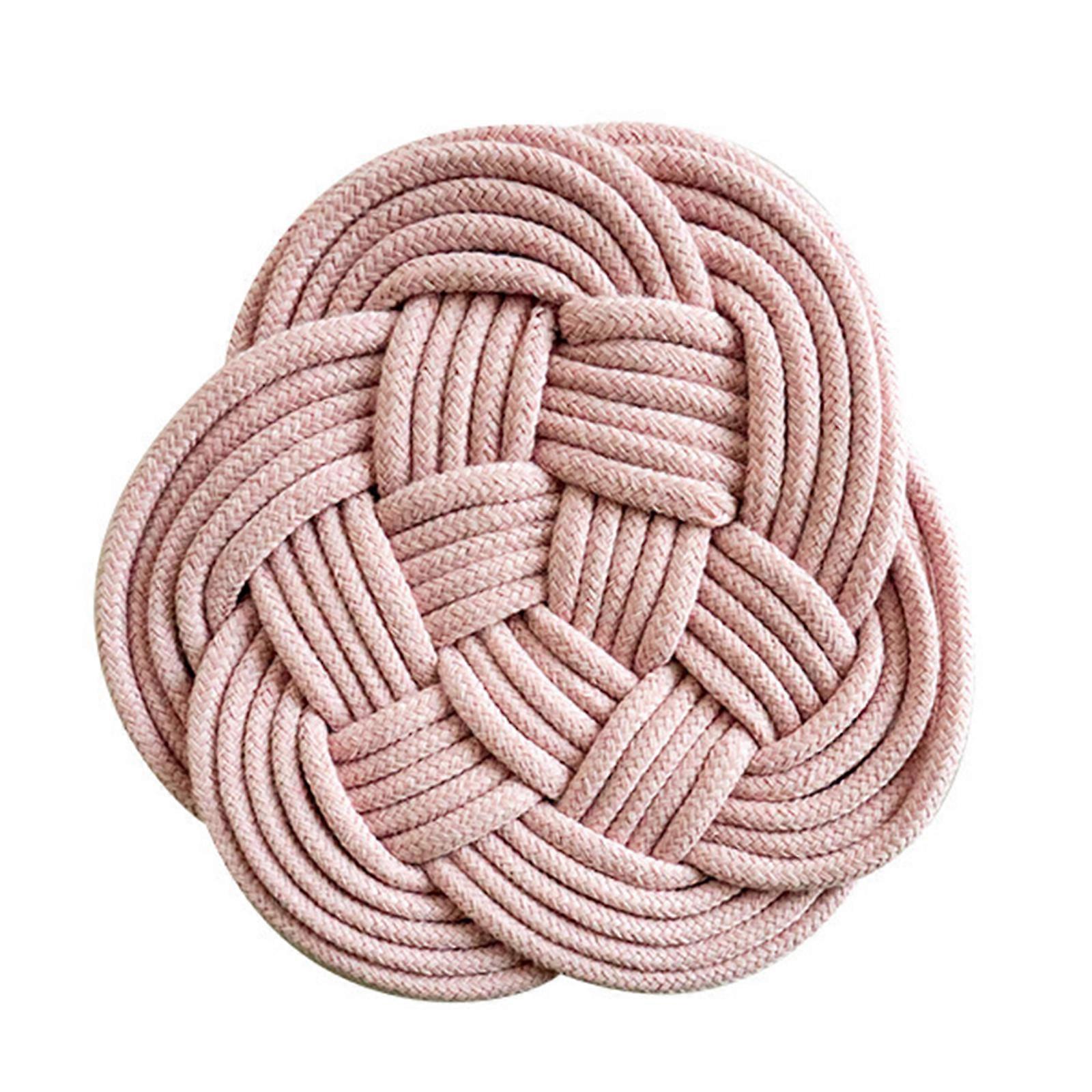 Delicate Heat Resistant Dish Mat Round Cup Mat Cushions Convenient Cotton Rope Insulation Mat for Kitchen cherry pink