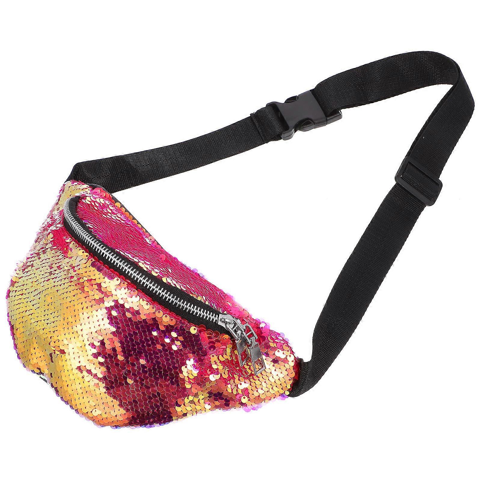 Sequins Waist Pack Children Fanny Pack for Outdoor Use Rose Red