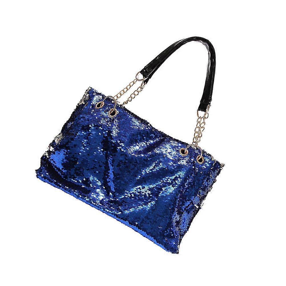 Sequin Tote Bag Large Capacity Handbag for Women 2Pcs Blue PU Strap