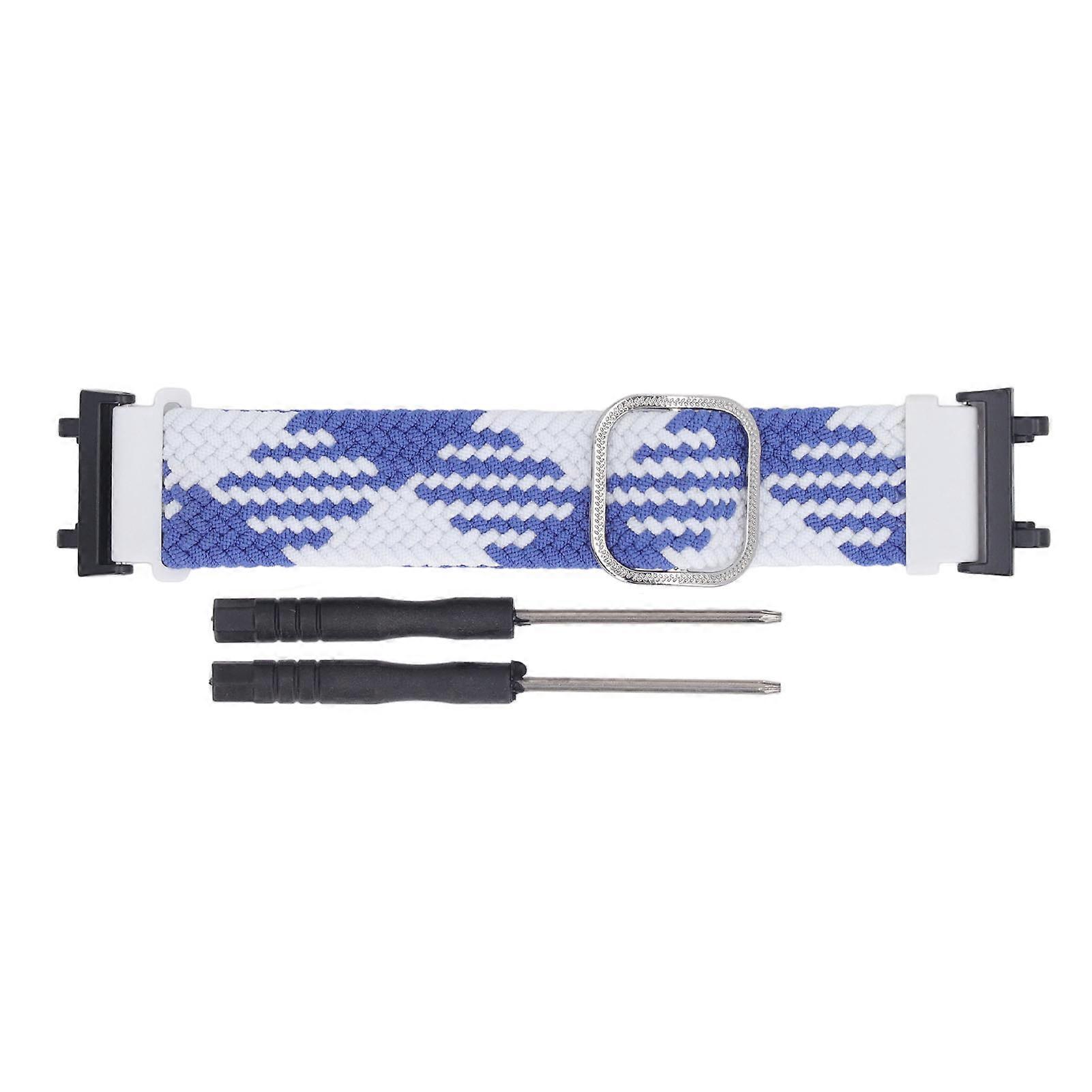 Braided Watch Band Replacement Stretchy Braided Elastic Watch Band for Amazfit Active Edge A2212 Blue White