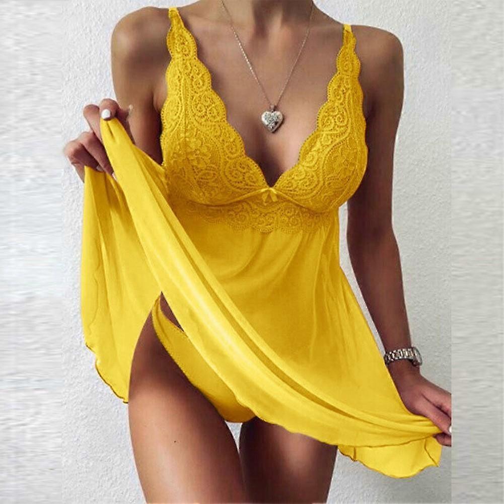 Sultry Lace Sleepwear Dress for Women V neck Nightdress Lingerie Robe Underwear