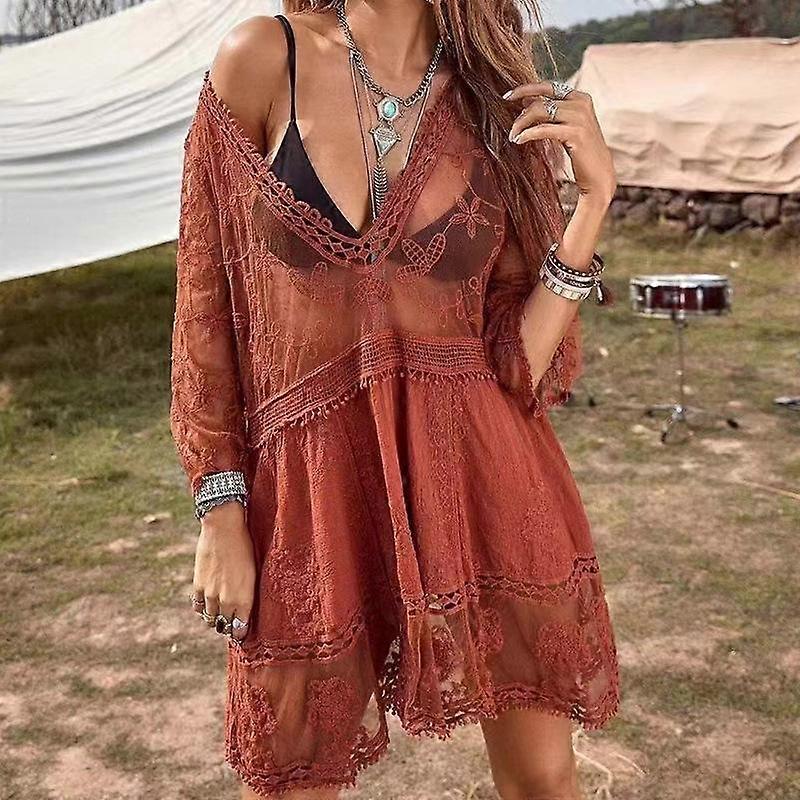 Swimsuits Woman Sexy Beach Cover Up V-neck Women Beach Tunic Dress Sarong Bikini Cover Up Crochet Top For Women Beachwear