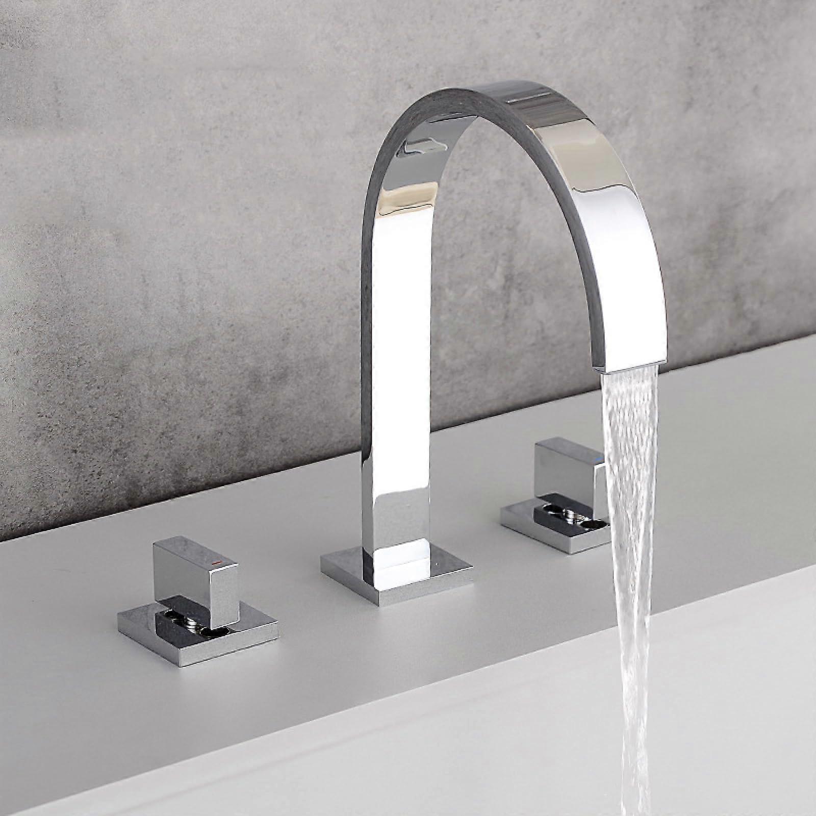 Bathroom Sink Faucet 3 Hole Brass Chrome, 2 Handle Hot and Cold Water Mixer Tap