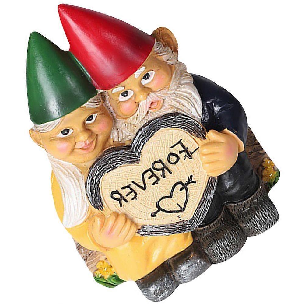 Gnome Couple Garden Ornament 2Pcs Resin Dwarf Statue Outdoor Decoration For Lawn 14X10Cm Multi Color