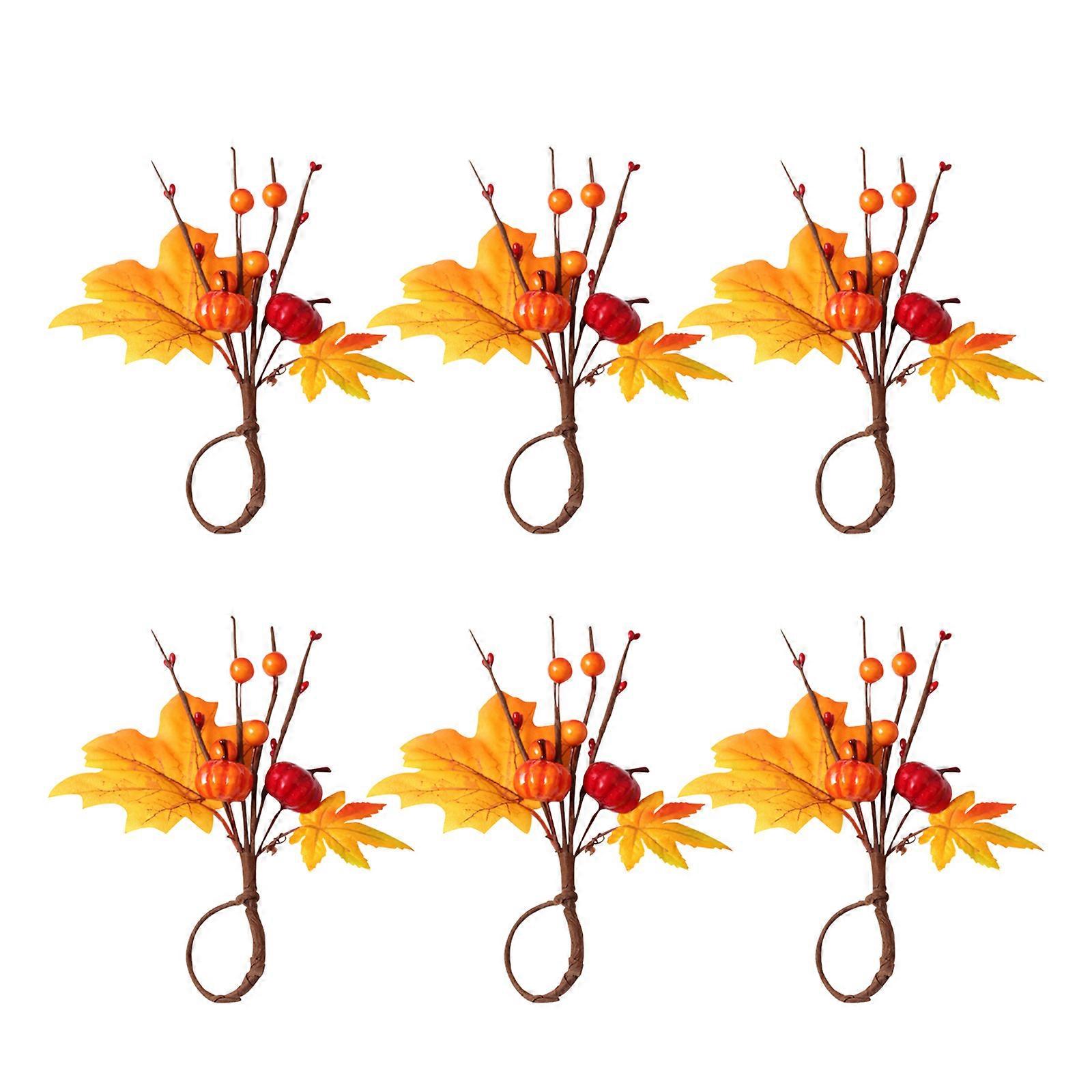 Thanksgiving Napkin Rings Set of 6 - for Autumn Thanksgiving Themed Party Wedding Family Gathering Decor