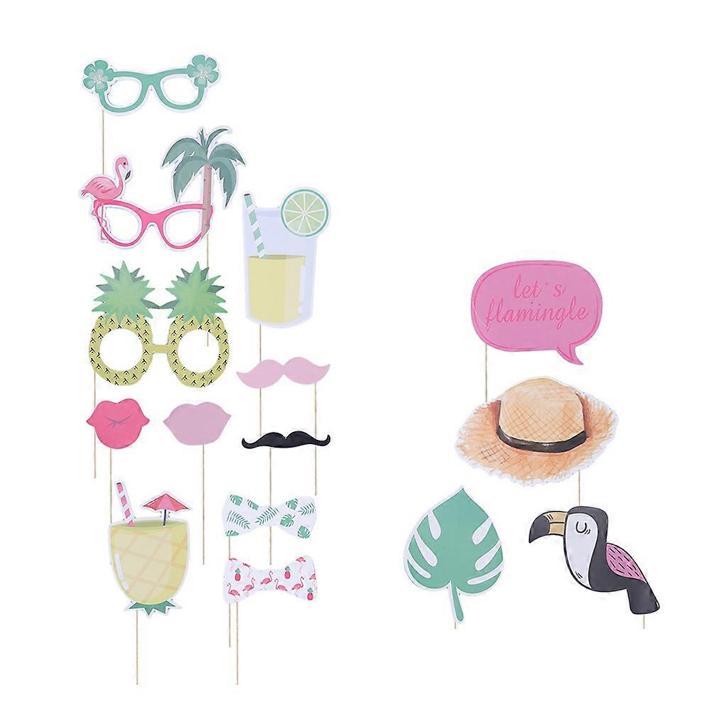 Hawaii Photo Props Set with Pineapple and Flamingo for Fun Party Decorations 15pcs Assorted Color