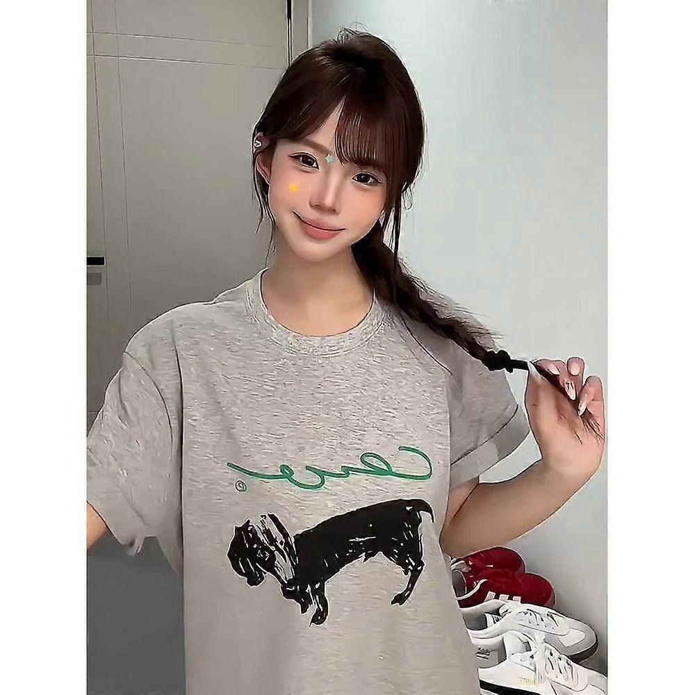 Hong Kong Style Trendy Brand Casual Simple Printed Half Sleeve T-Shirt Top Clothes Unisex Style Cotton Short Sleeve T-Shirt Women's Small Icon