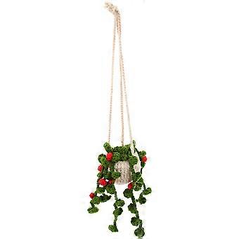 Crochet Car Hanging Ornament Crochet Potted Plant Decor Car Rear View Mirror Hanging Accessory