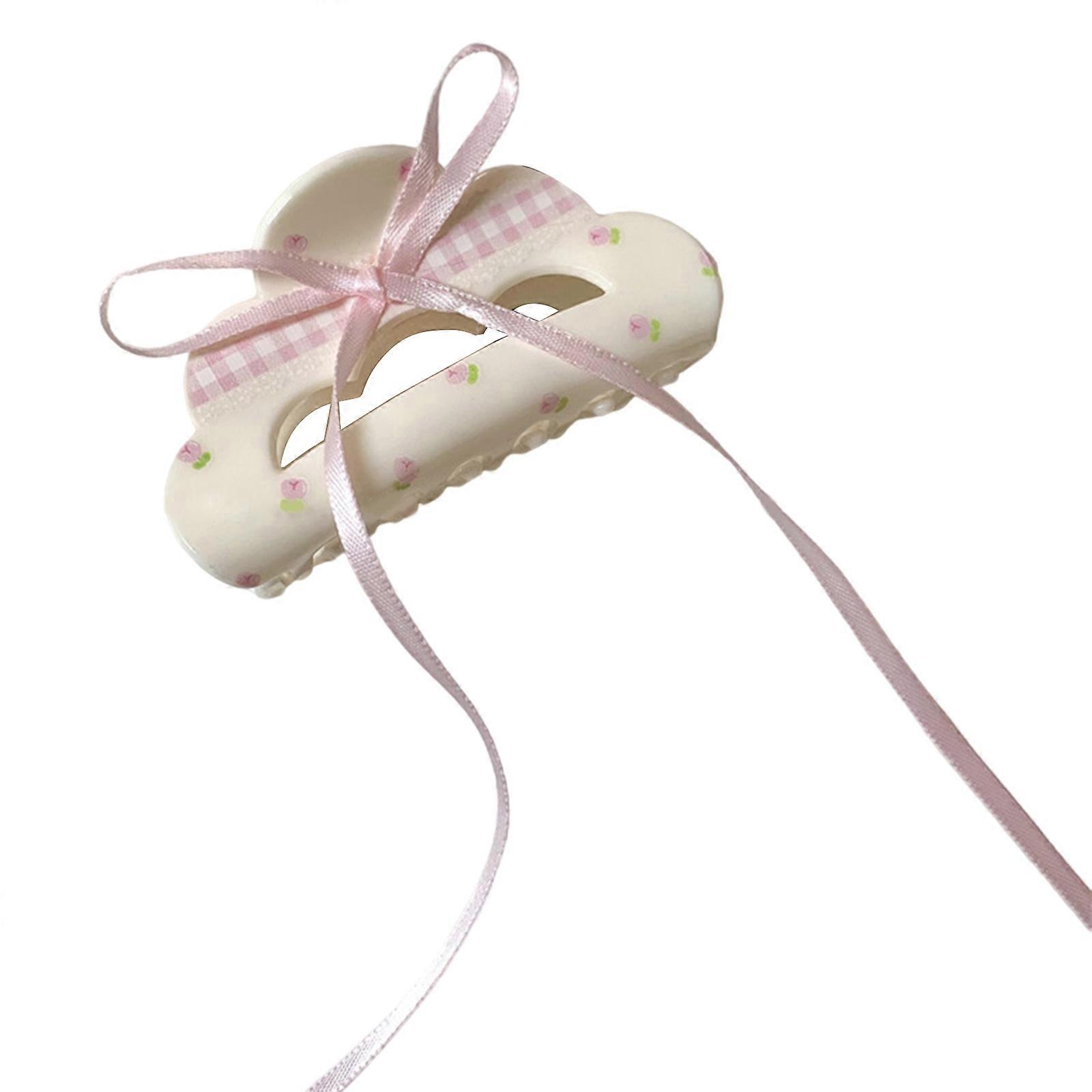 Long Ribbon Bowtie Hair Claw for Girl Flower Hair Clip Jaw Clip Nonslip Ponytail Holder Hair Grip Women Hair Ornaments