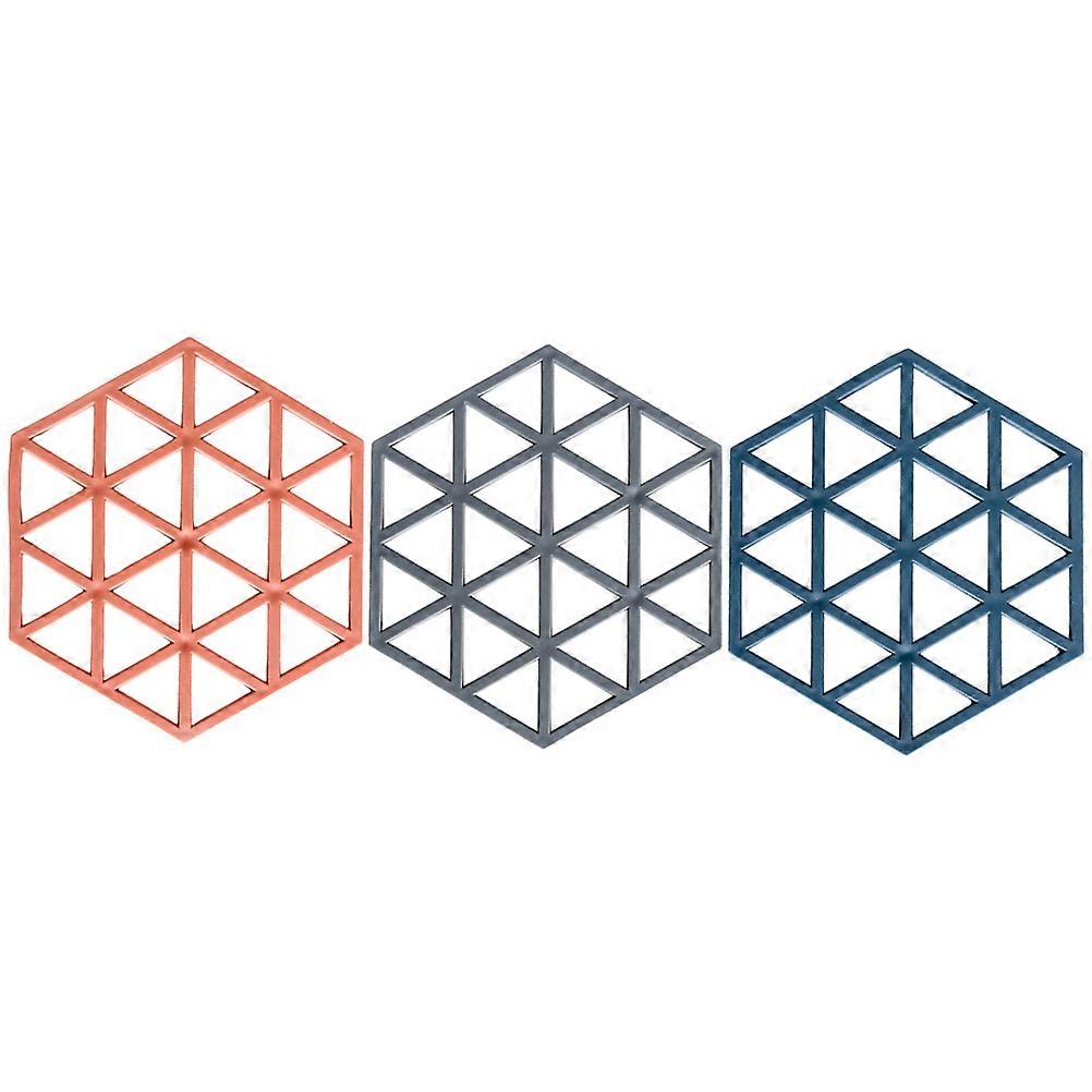 Heat Insulation Mat Dining Use Blue PVC Material Hexagon Design 3Pcs