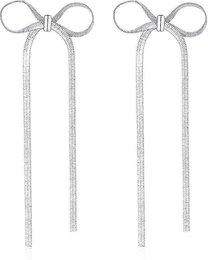 Bow Earrings For Women, Gold Silver Bow Dangle Drop Earrings Long Tassel Chain Bow Knot Earrings For Wedding Trendy Jewelry Gift