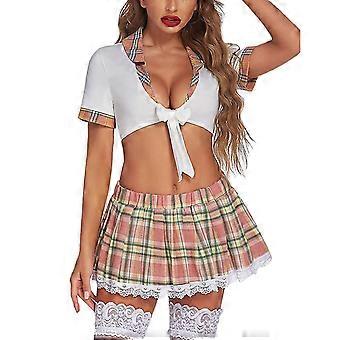 Schoolgirl Roleplay Lingerie Mini Skirt Pleated Chequered Shirt Student Cute Costumes