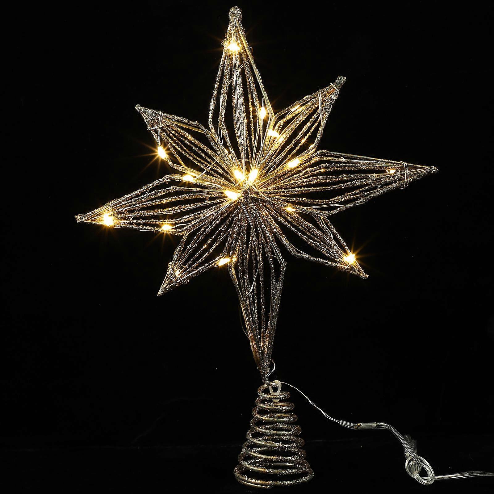 Christmas Tree Topper Lighted Star Decoration For Holiday Decor 20CM Golden Powered By 2 AA Batteries 5Pcs