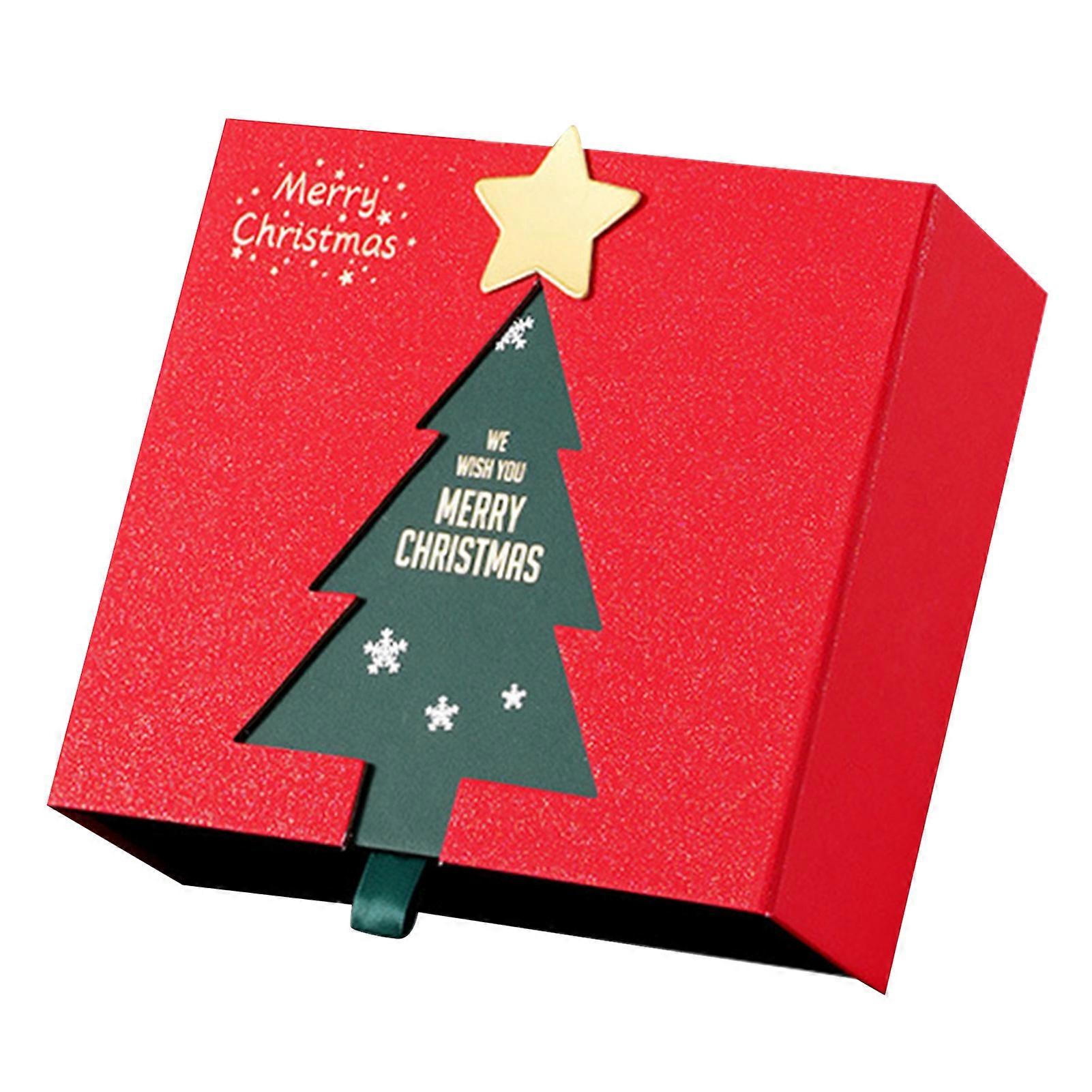 Christmas Gift Box Xmas Eve Red Gift Box with Tree Pattern Presents Wrapping Container for Holiday Decoration