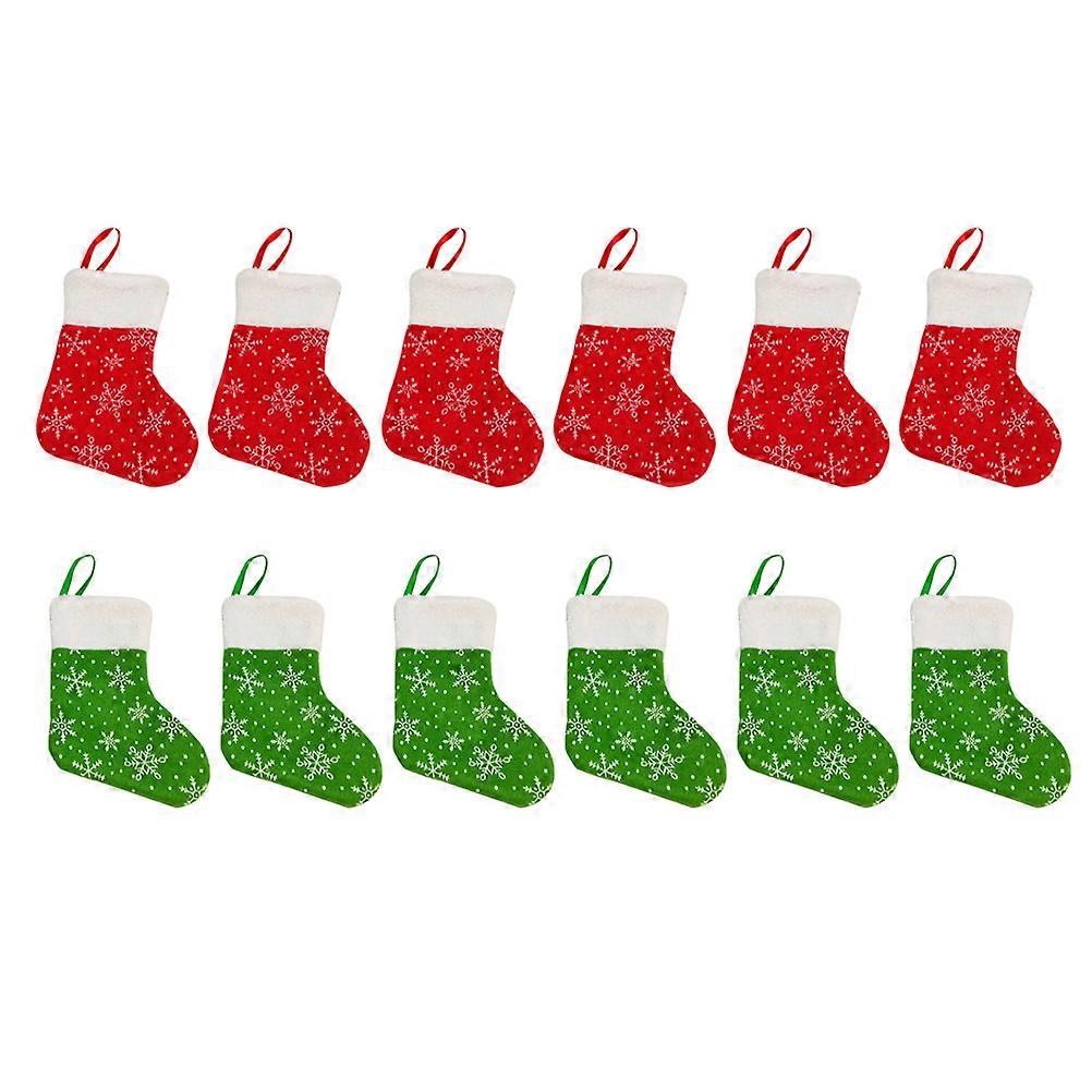 Christmas Gift Pouch Red Green Snowflake Socks for 24Pcs