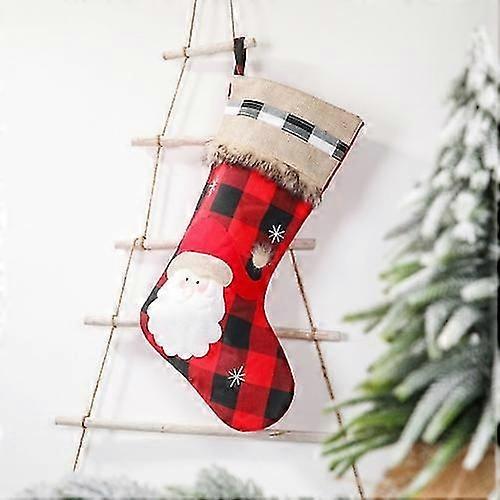 Christmas Decorations Christmas Socks Linen Red Black Plaid Christmas Socks Gift Bag