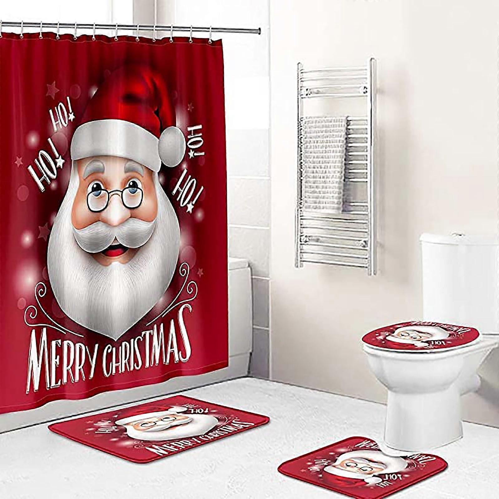 Christmas shower Curtain Bathroom-slip Carpet Rug Toilet Cover Mat Set 4PCS, Christmas Foot Cushions