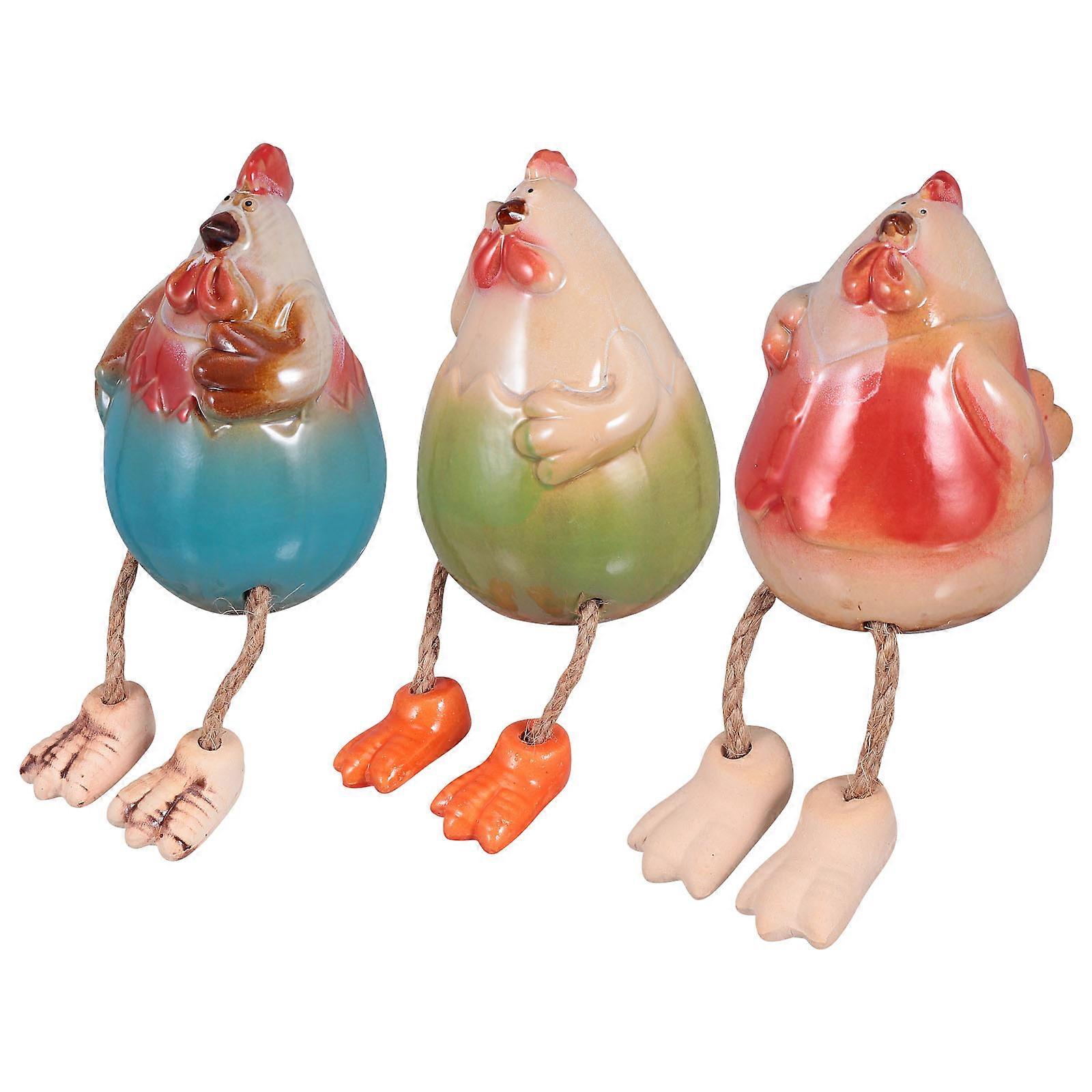 This is a set of hanging feet chicken family statue sitting on stool decorations. They are made with ceramic material, which can help add a warm and elegant atmosphere to the place you want to decorate. Just put them on the tabletop, TV cabinet, porch and other places. Use these decorations to light up your ! Features - Color: Assorted Color. - Material: Ceramic. - Size: 11.50X7.00X7.00 cm/ 4.52X2.75X2.75 inch. (Mother Chicken) - Size: 12.00X7.00X7.00 cm/ 4.72X2.75X2.75 inch. (Father Chicken) - Size: 8.50X7.00X6.00 cm/ 3.34X2.75X2.36 inch. (Kid Chicken) - Adopted of premium ceramic material, it is not easy to damage, very practical and . - They feature fine craftsmanship design and excellent process. The makes it more lightweight and compact. - Great for home decoration, easy to place them on your desktop or some other places. - Using these family of three chicken statue to create a cozy atmosphere for your . - Bedroom, home, office desk and other occasions are all applicable. It is the best gift choice to send friends and family. Package list: 3 x Chicken Ornaments