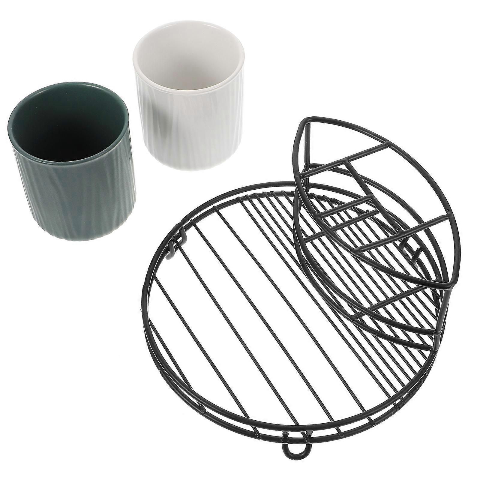 Ceramic Toothbrush Holders Stand Iron Storage Stand Versatile Toothbrush Cups For Couple 1Set