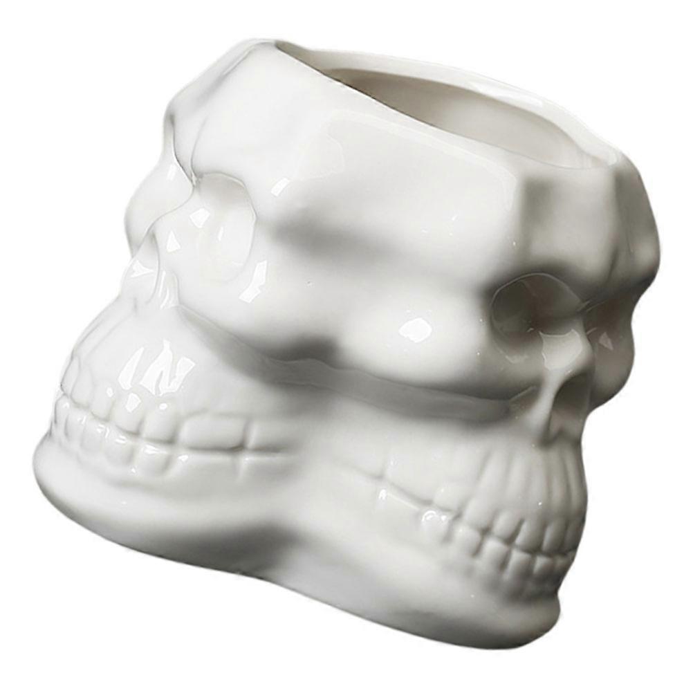 Ceramic Flower Pot White Succulent Plant Pot for Home Skull Design
