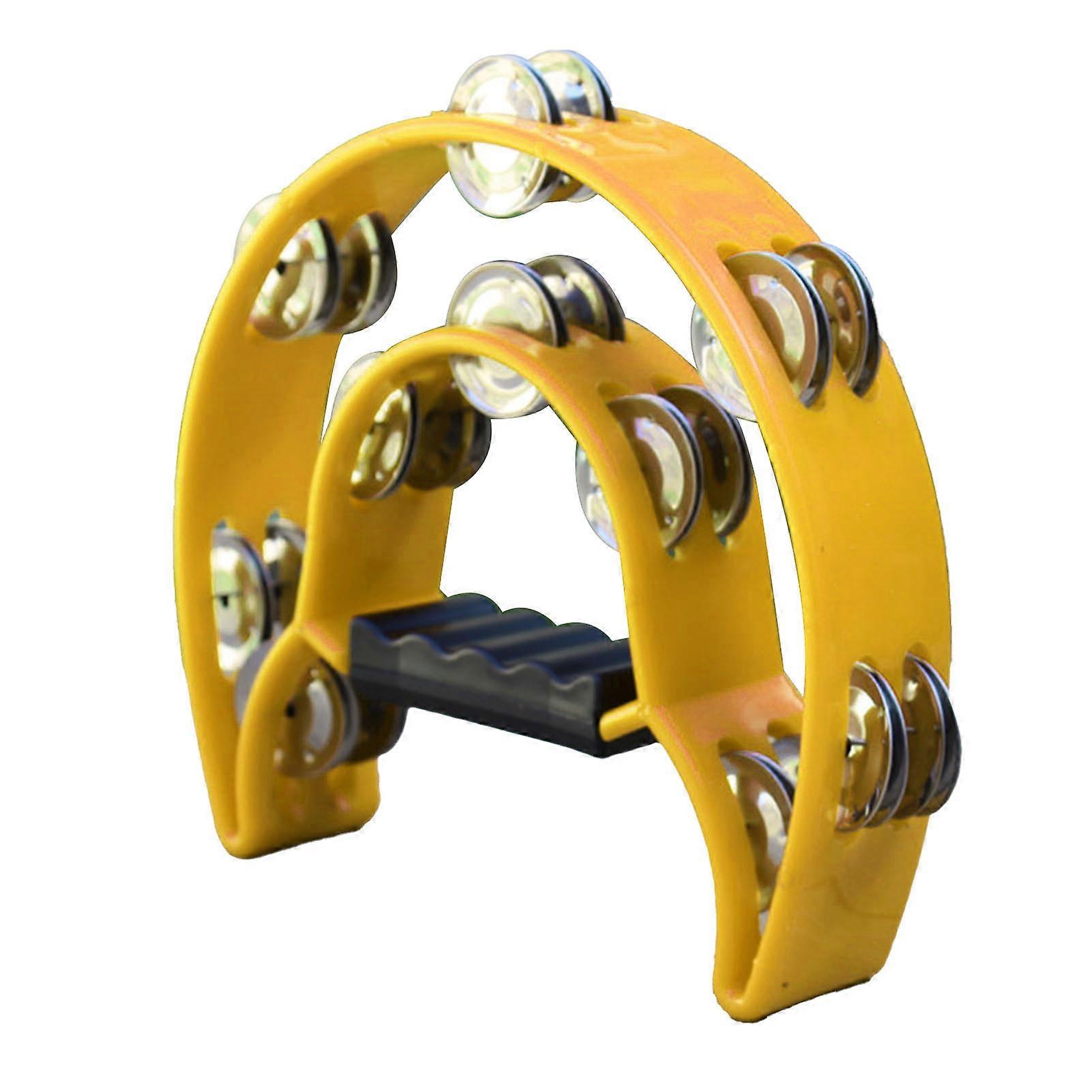 Hand Tambourine Bell Big Size Double Row Metal Jingles Percussion Instrument Bell Tambourine for Bar Entertainment Yellow