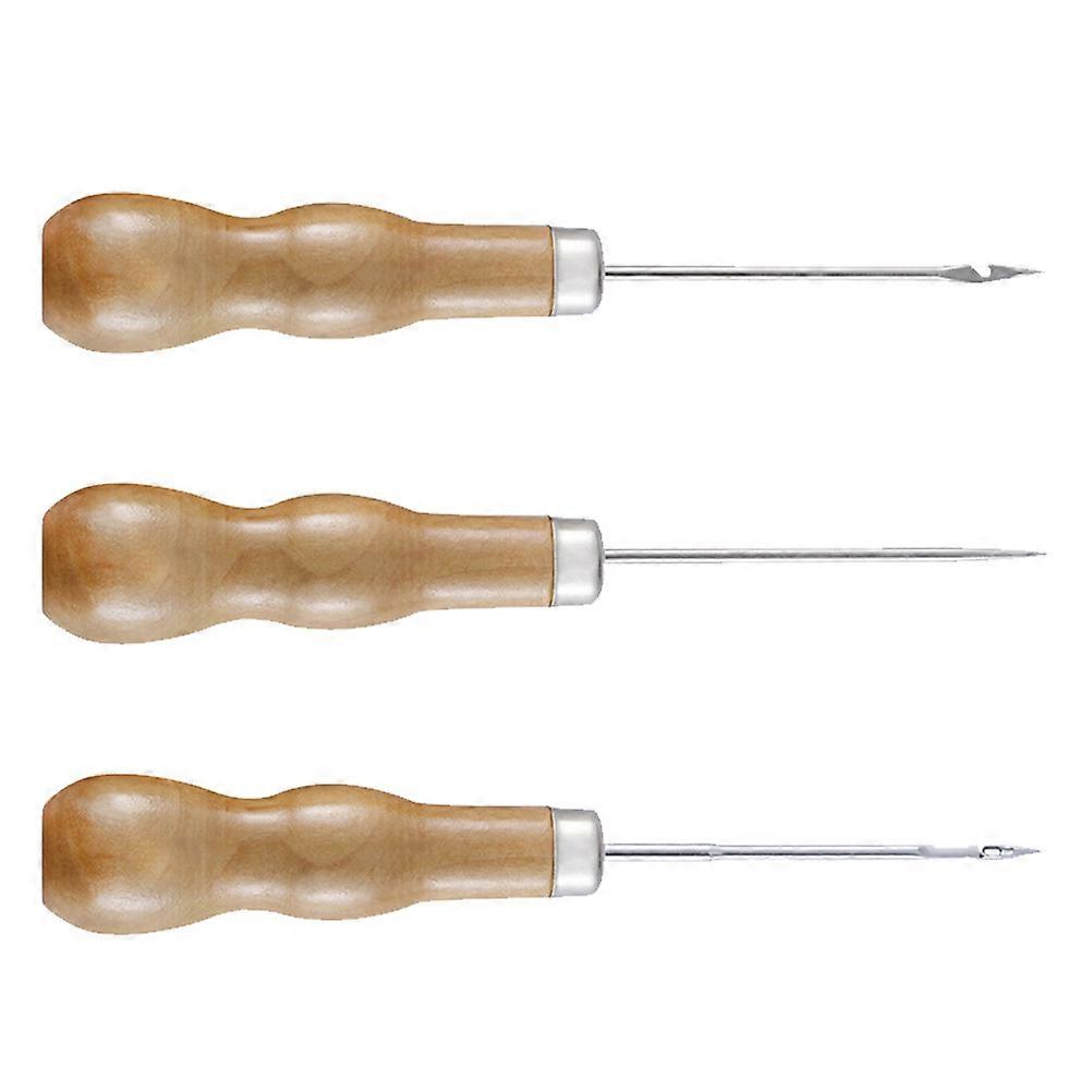 Hand Sewing Tool Diy Supplies Wooden Handle Stitching Awls 3Pcs
