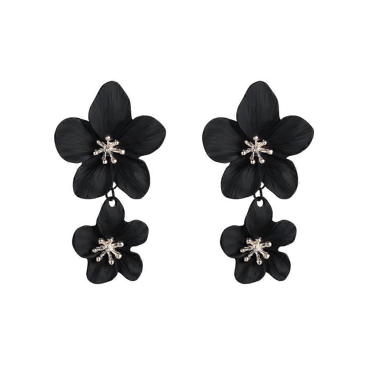 Handmade Bohemian Large Matte Double Dangle Drop EarringsMetal floral Stud Earrings For Women