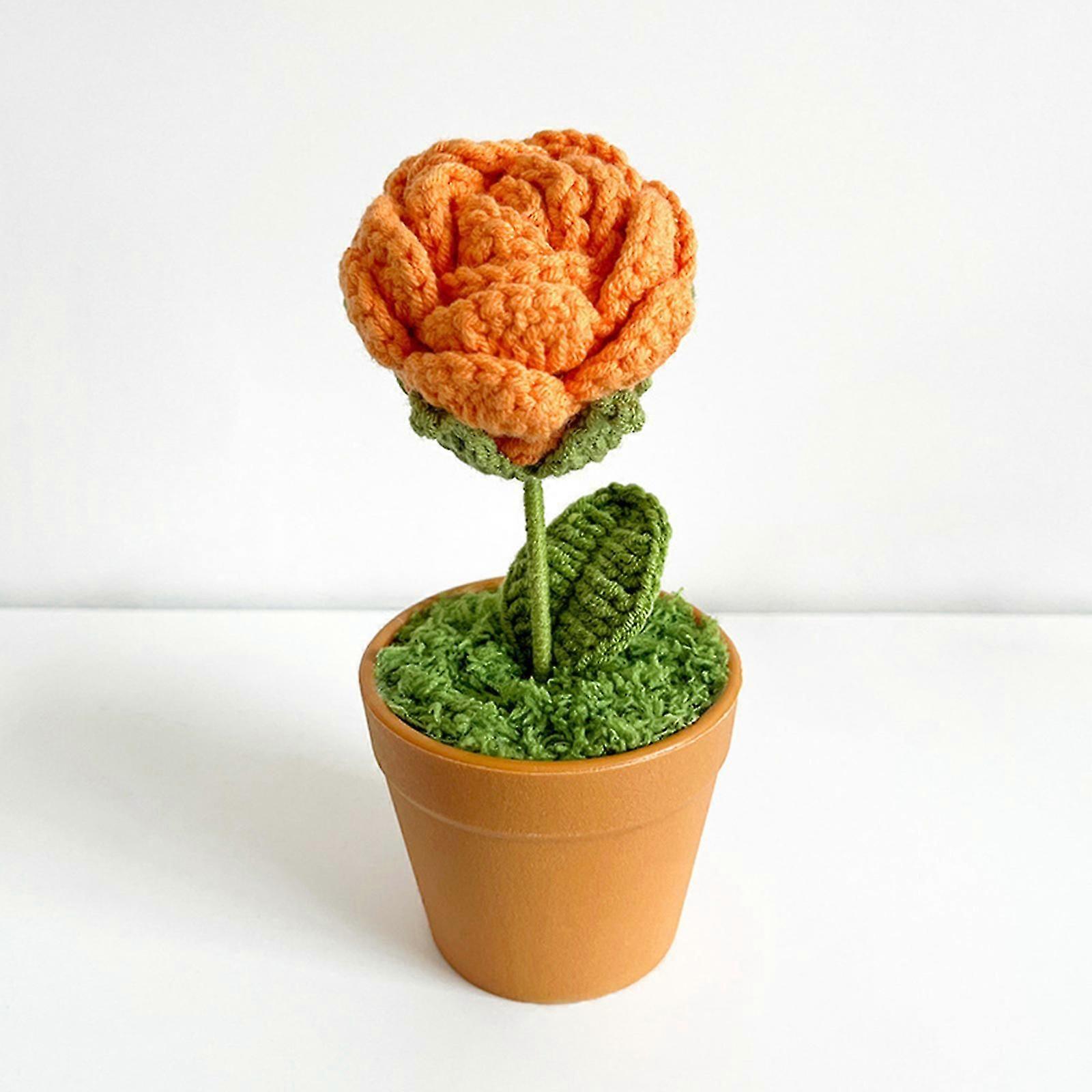 Handwoven Bouquet Potted Knitting Flower Potted Plant Ornament Crafts for School