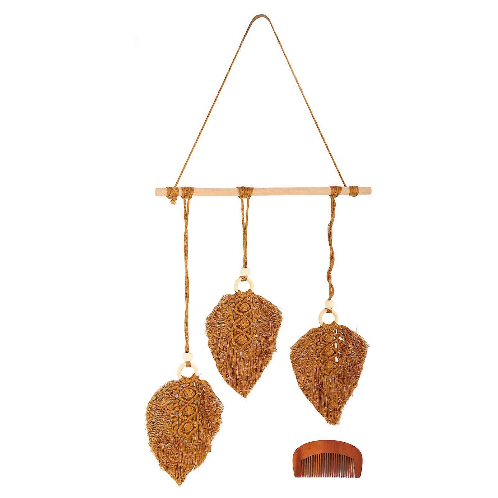 Handwoven Leaf Tapestry Boho Style Cotton Leaf Tapestry Wall Hanging Tapestry Decoration for Bedroom Dormitory Caramel