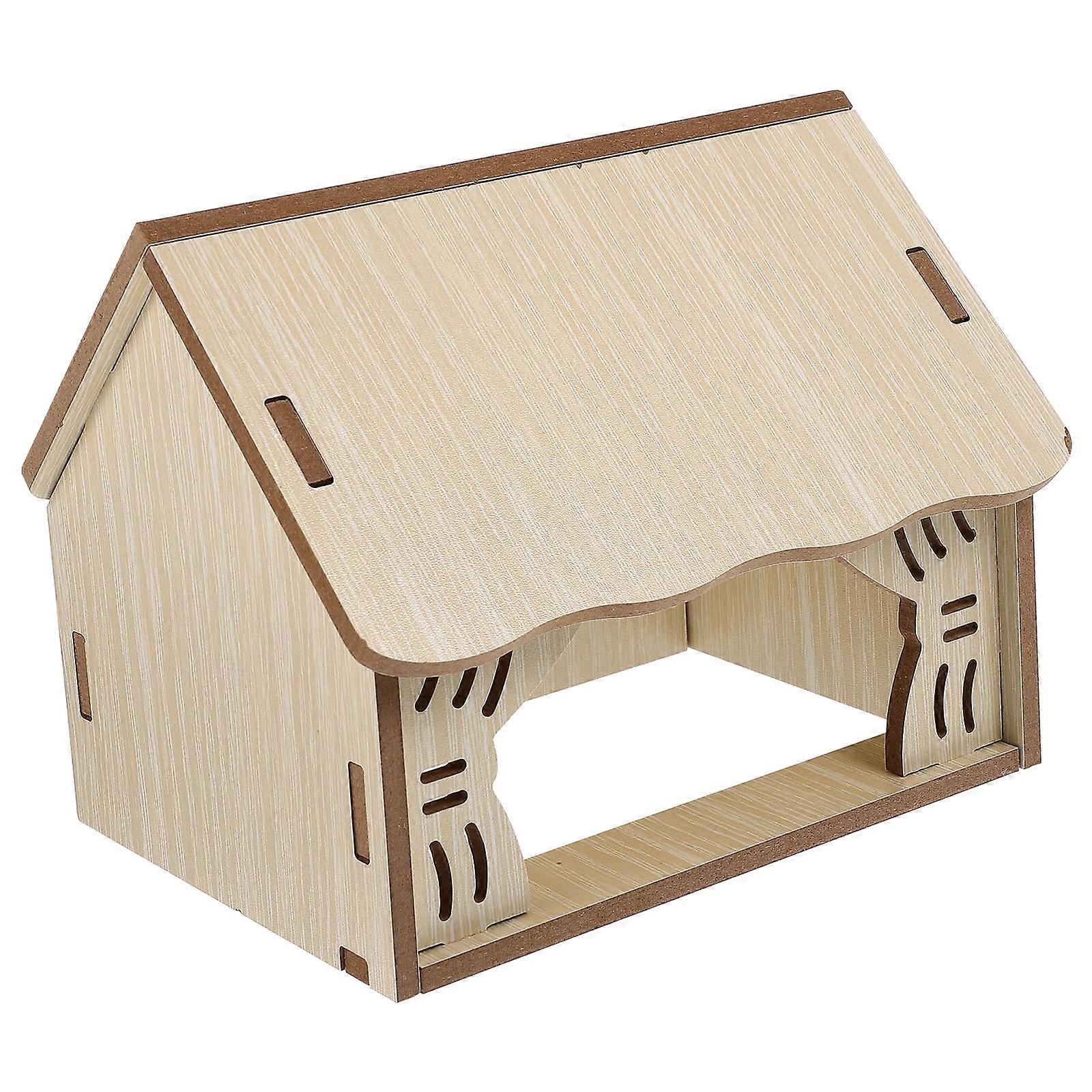 Small Hamster Hideout Wood Cabin for Pets 2Pcs Beige Rest and Play
