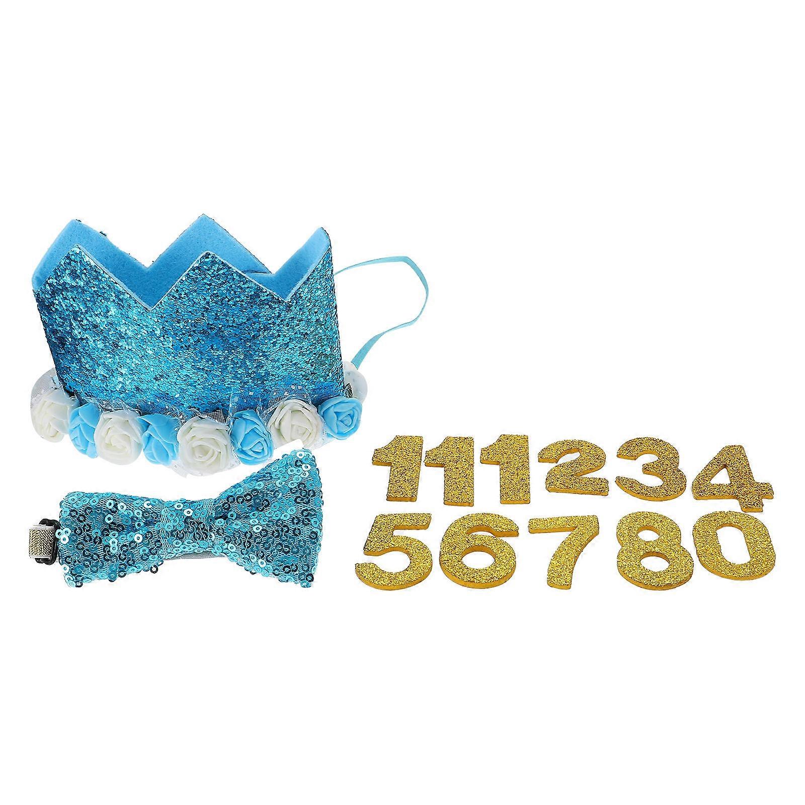 Pet Birthday Party Crown Hat Pet Bow Tie Kit Adjustable Bow Tie Dog Birthday Supplies 1Set