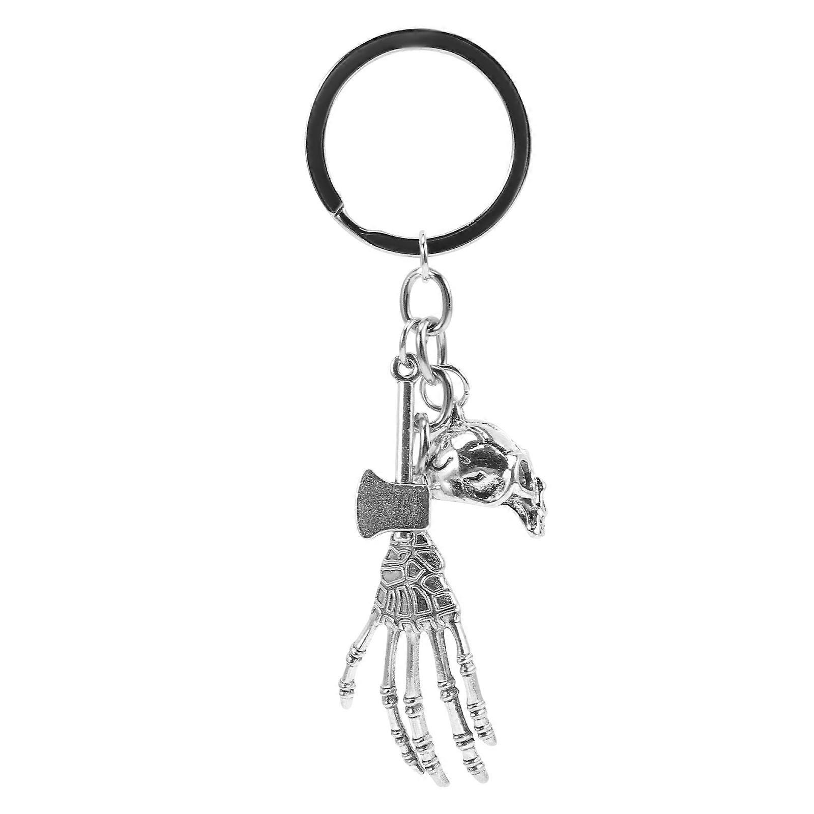 Skull Keychain Punk Style Fashion Ring For Car Key Handbag Backpack Silver Metal 1Pack