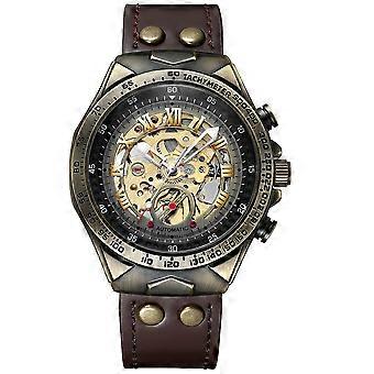 Luxus férfi automata mechanikus karóra bőrszíj retro csontváz számlap
