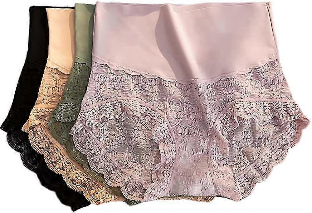High-Waisted Women's Lace Underwear with Tummy Control and Pure Cotton Crotch
