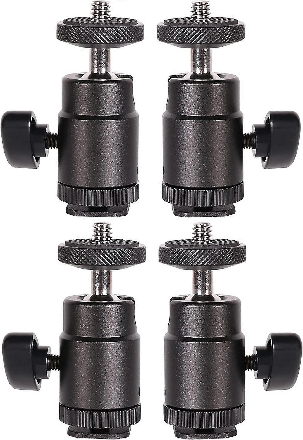 Mini Ball Head Hot Shoe Mount with 1/4 inch Adapter Screw for DSLR Camera, Monitor, Camcorder, Flash Light, Tripod, Light Stand (4 Pack)