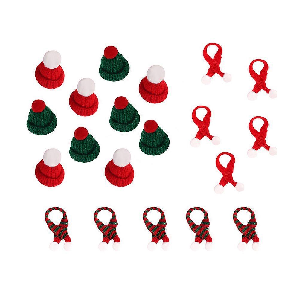 Mini Santa hat and scarf set, 18 pieces mini Christmas scarf mini Santa hat set, Santa hat mini set, small and cute, item decoration