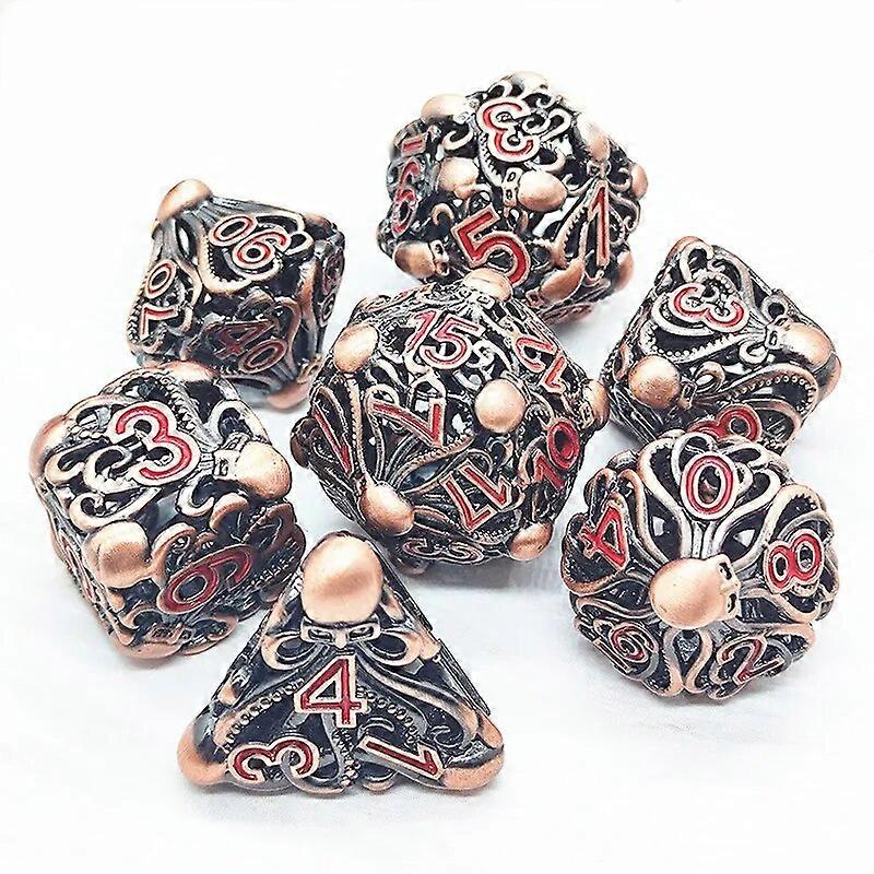 Mini Planet 7pcs Pure Copper Metal Dice Set DND Cthulhu Dice Used for D&D Role Playing Games Hollow Octopus DND Dice Sets