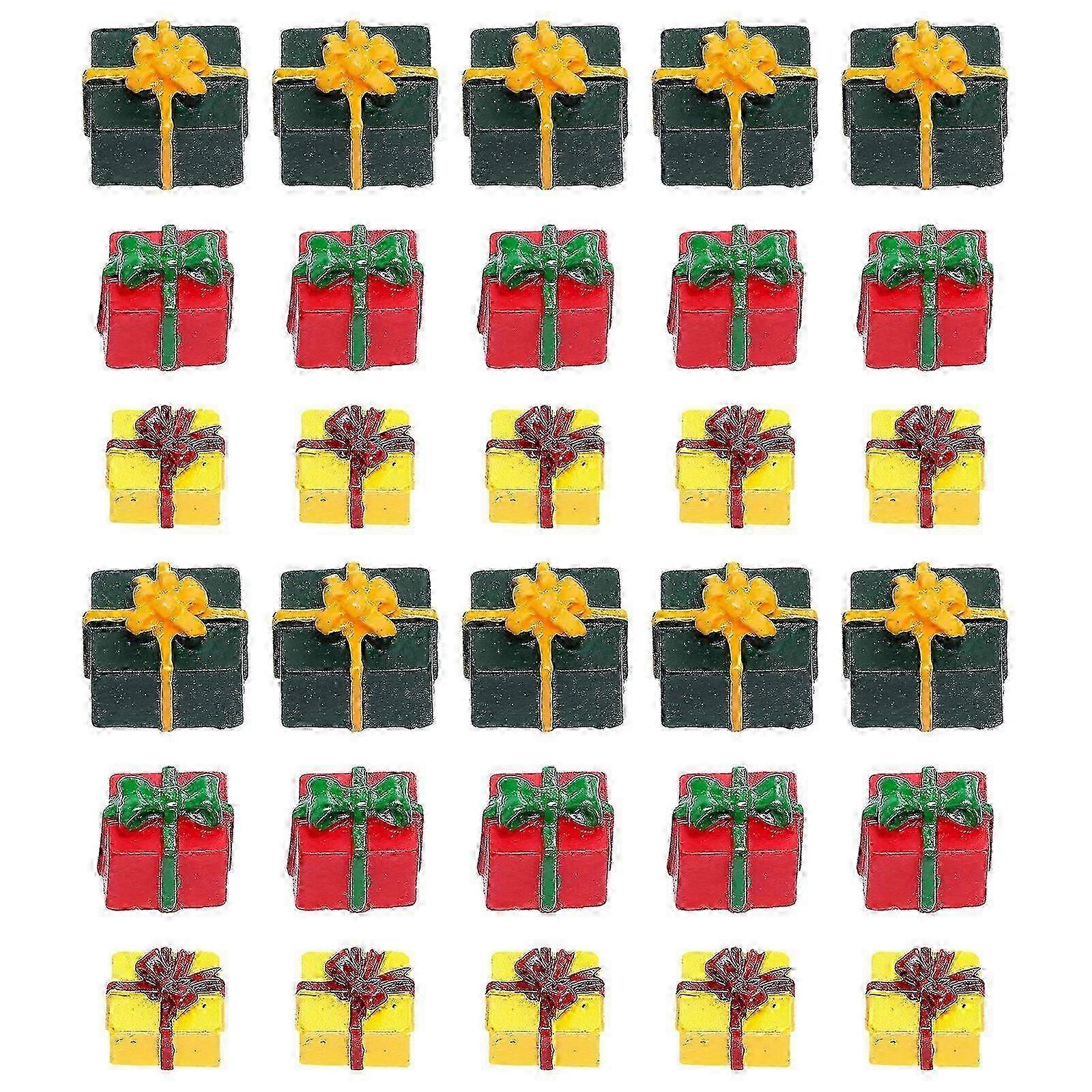 30Pcs Christmas Miniature Ornaments Mini Resin Christmas Gift Box Decoration We set out to create the cutest sentimental rustic Xmas gift box ornaments that combine a vintage traditional fashion style that brings you back in time to the simple holidays with friends and family. Our mini decorations are amazing ornaments that your kids can use to decorate their own rooms and Christmas tree. Features - Color: Red, yellow, green - Material: Resin - Size: 1.10X1.00X1.00cm/0.43X0.39X0.39inch. - It's a resin miniaturization, designed with gift box shape with bright colors. - Made of material, durable and not easy to deform. - They are lovely and toys for your child as a Christmas gift. - Great decoration for bedroom, living room, car, party, even anywhere you want. - You can put it on the desk, on the cabinet, on the table, or wherever you want it.Packing list30 x Landscape Adornments