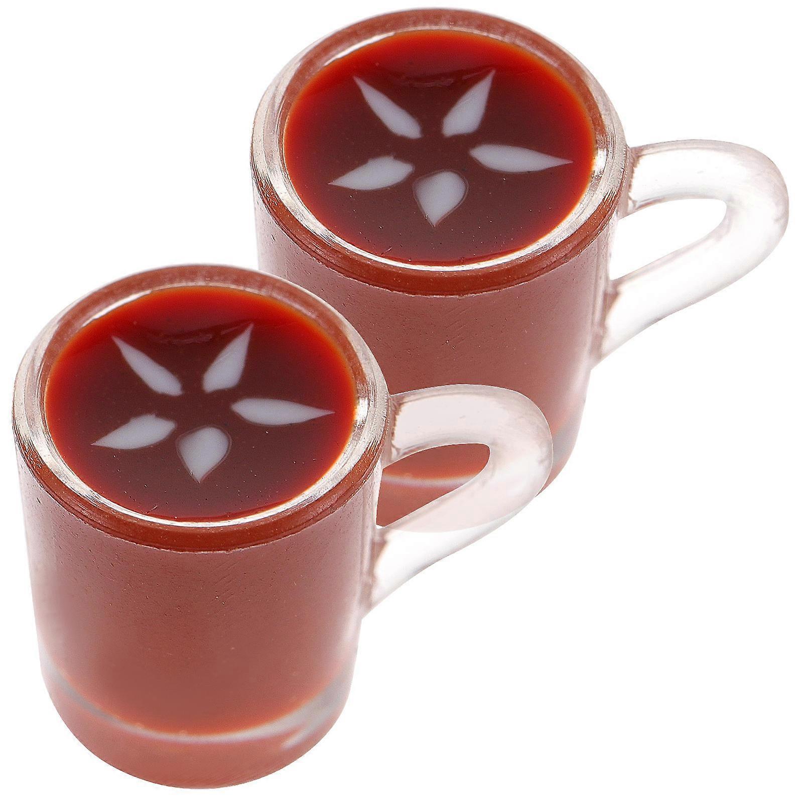 Miniature Coffee Cup Doll House Ornament for Decor 2Pcs Resin