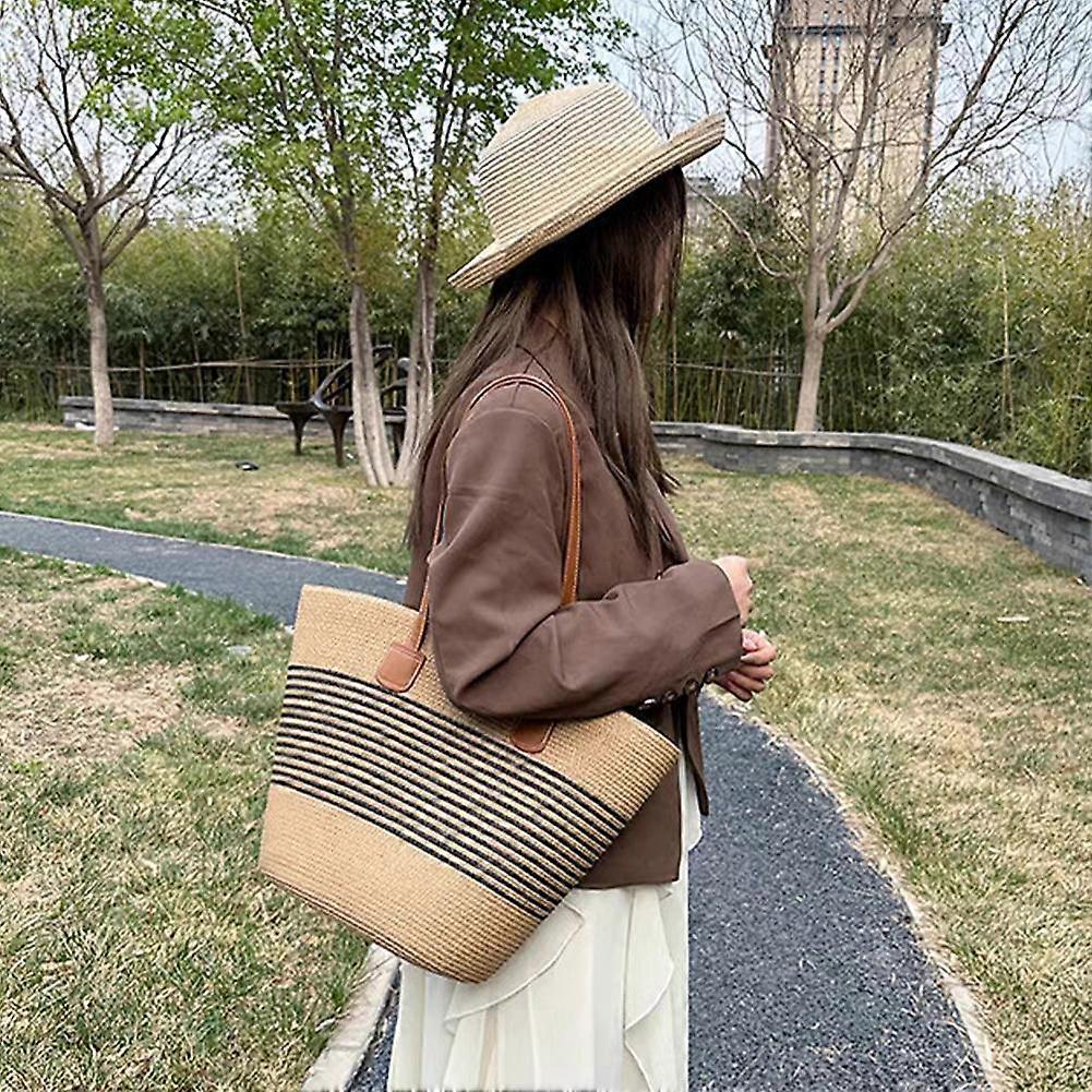 Large Capacity Casual Straw Woven Shoulder Bags Patchwork Beach Party Tote Bags
