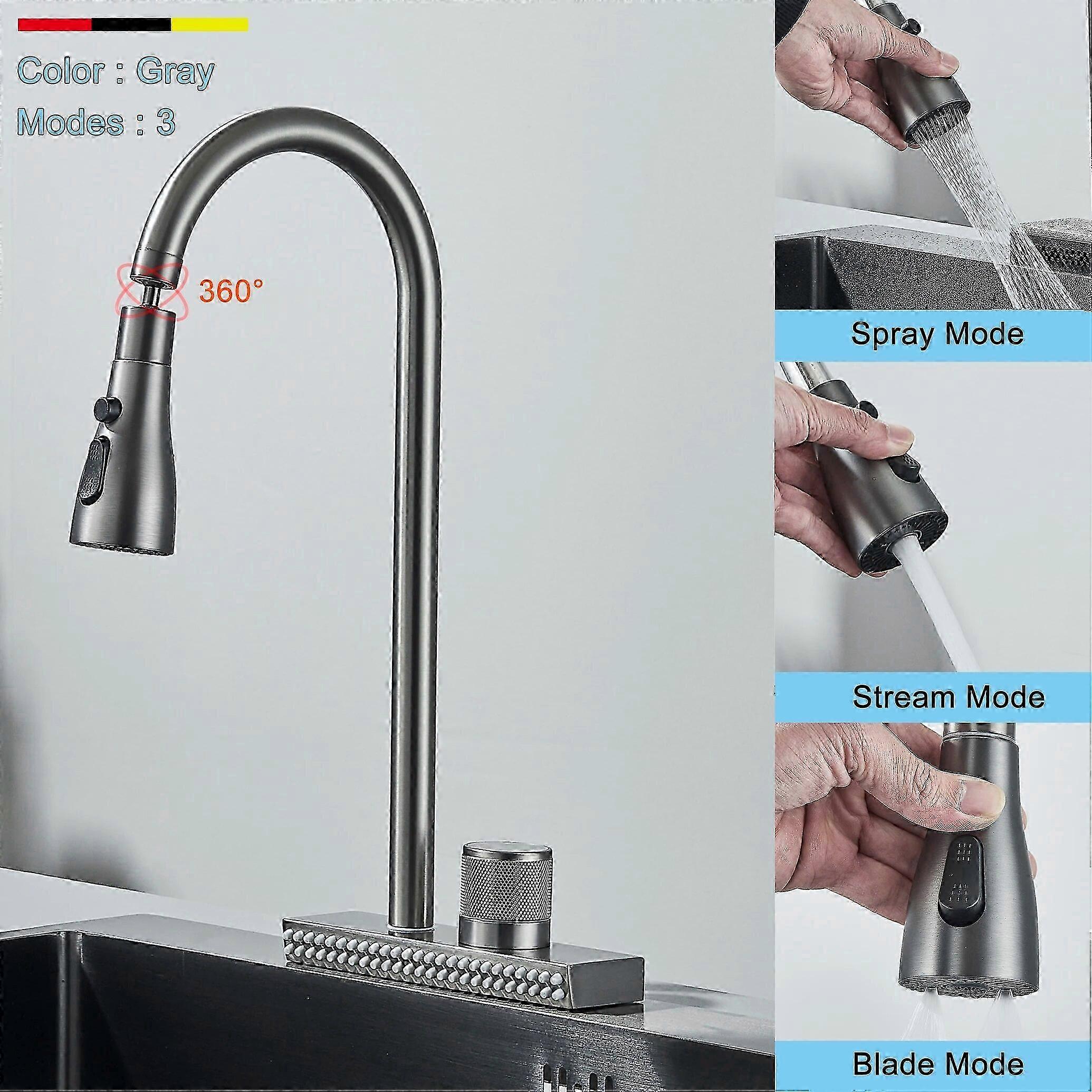 Big Waterfall Kitchen Faucet Single Lever Hot Cold Mixer Tap Rotatable Sink Faucet Gray for Kitchen
