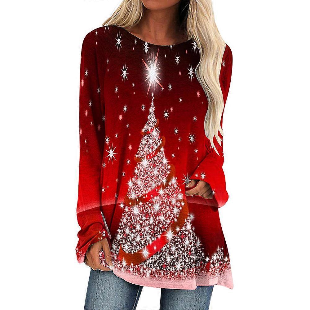 Women Ladies Crew Neck T-Shirt Christmas Snowflake Print Long Sleeve Casual Xmas Tops Gift