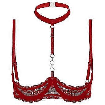 Női 1/4 csésze drót melltartó kötőfék nyak O gyűrű áttetsző csipke push up melltartó fehérnemű nyitott melltartók Underwear_fc10