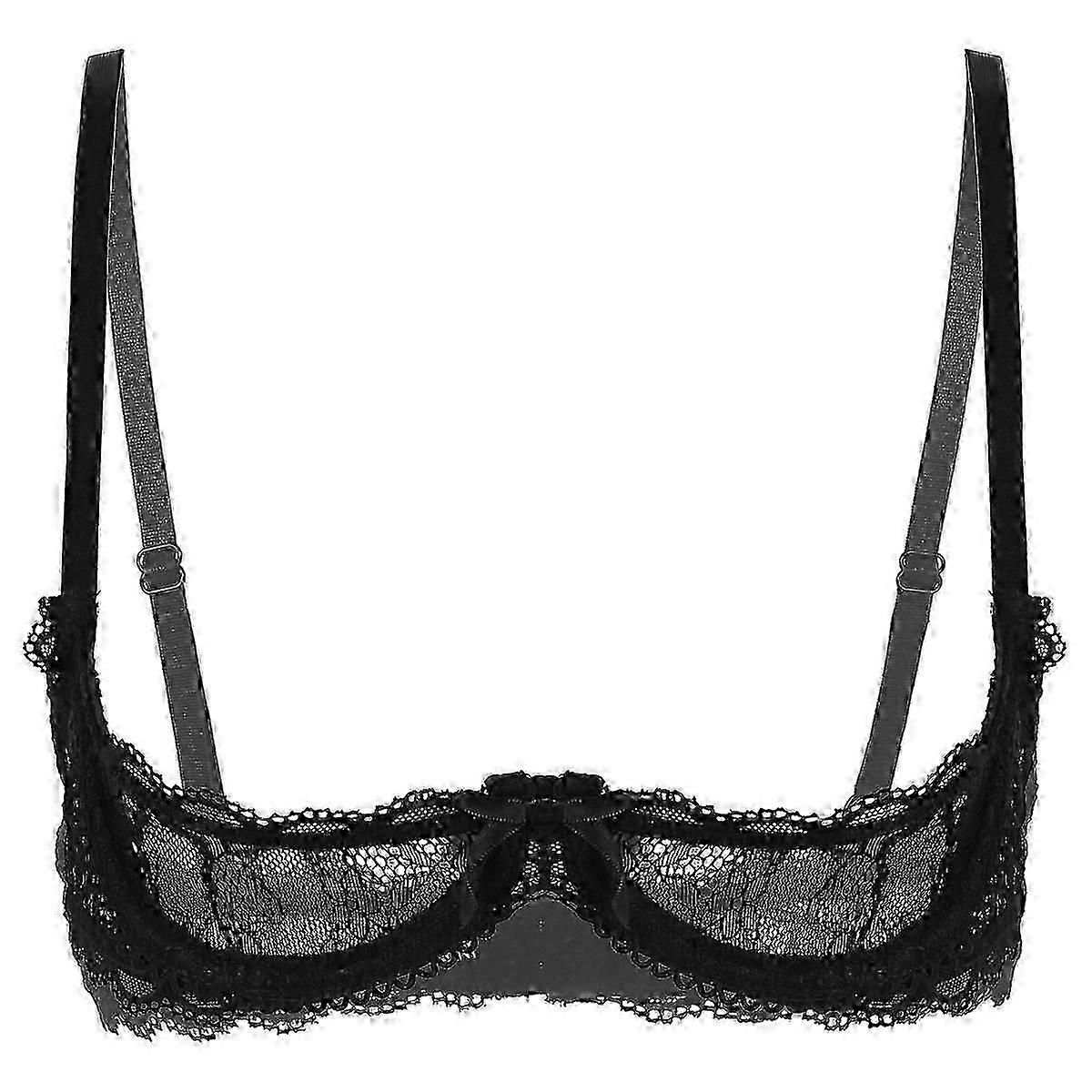 Womens Sheer Lace Open Cup Lingerie Bra Adjustable Spaghetti Shoulder Straps 1/4 Cups See Through Push Up Underwire Bra Tops