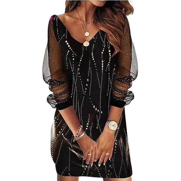 Women's Deep V Neck Pleated Long Sleeve Floral Print Mini Dress