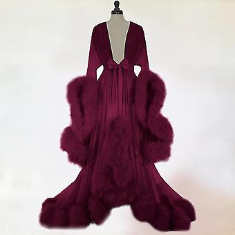 Női Divat Tüll köntös Hosszú fehérnemű Hálóing Fürdőköpeny Hálóruha Toll Menyasszonyi köntös Csipke Fehérnemű