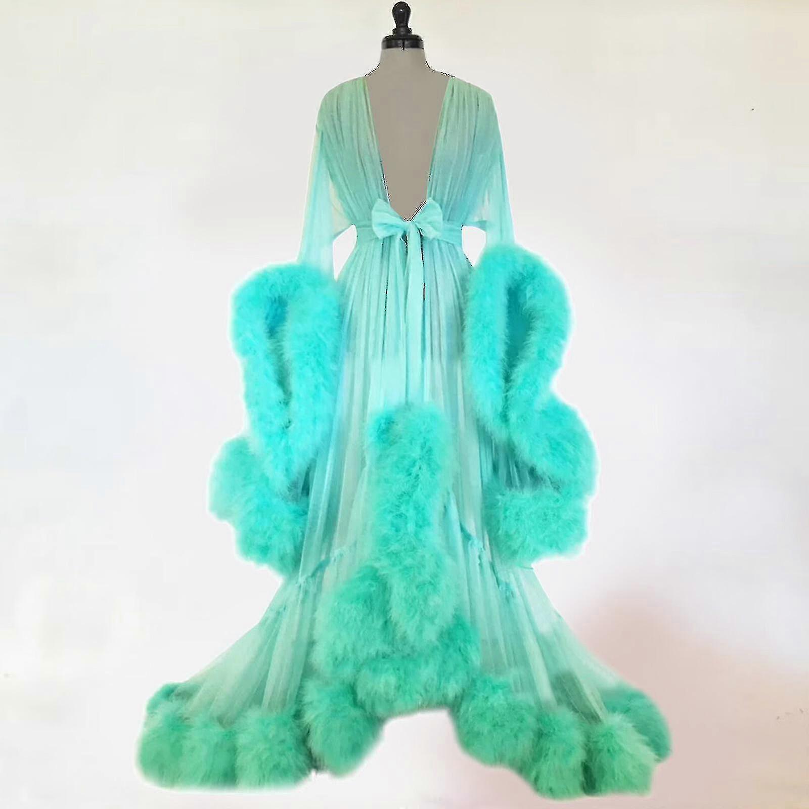 Women Fashion Tulle Robe Long Lingerie Nightgown Bathrobe Sleepwear Feather Bridal Robe Lace Lingerie