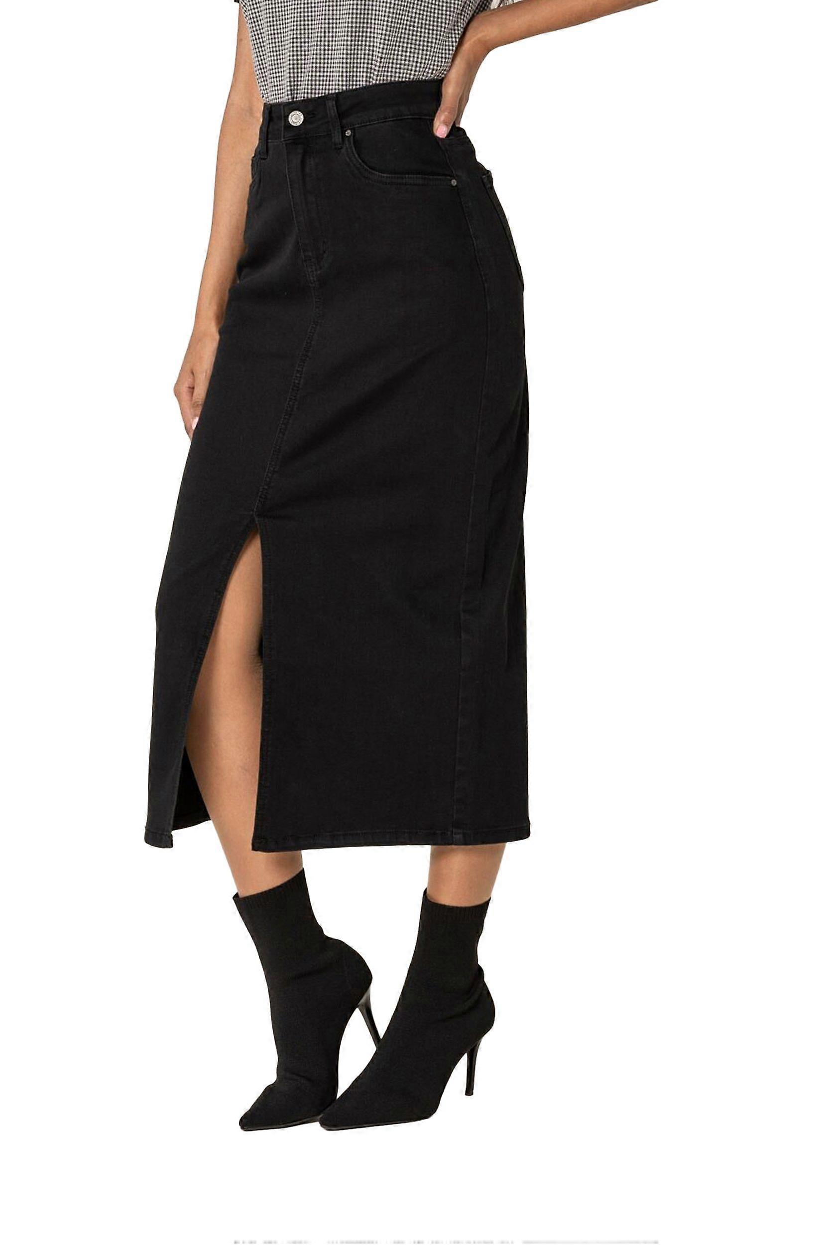 Damen Eleganter Midi Rock mit Schlitz Langer Jeansrock Stretch Denim Long Skirt