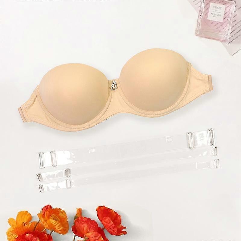 Women Half-Cup Thick Padded Underwire Bra with Transparent Straps and Backless Design Invisible Bra Lingerie 70B-85B 70C-80C
