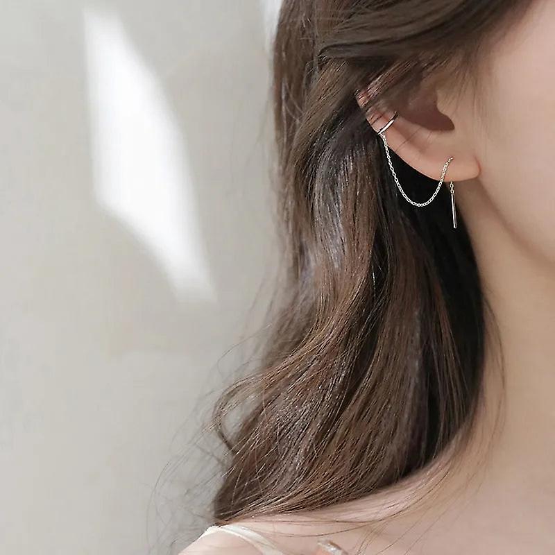 Women Earring Girl Stud Ear Drop 1 Pc Cross Ear Cuff Tassel Rhinestones Piercing Simple Chain Clip Cuff Trendy